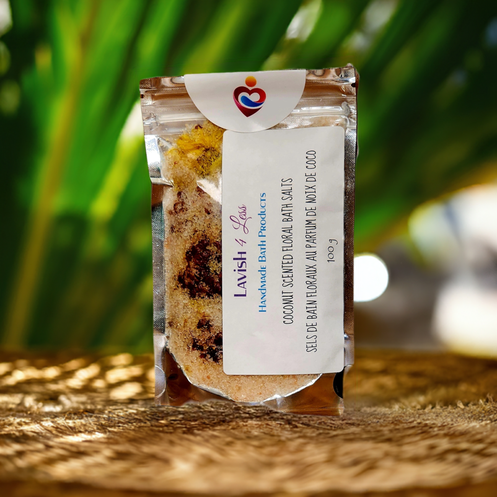 1 Coconut Scented Floral Bath Salts: Treat yourself to a special pampering session after a long day or revitalize yourself in the morning. Picture yourself unwinding in a bath filled with the enchanting aroma of coconut. Our Coconut Scented Floral Bath Salts offer a blissful escape, transforming your bathroom into a serene oasis.