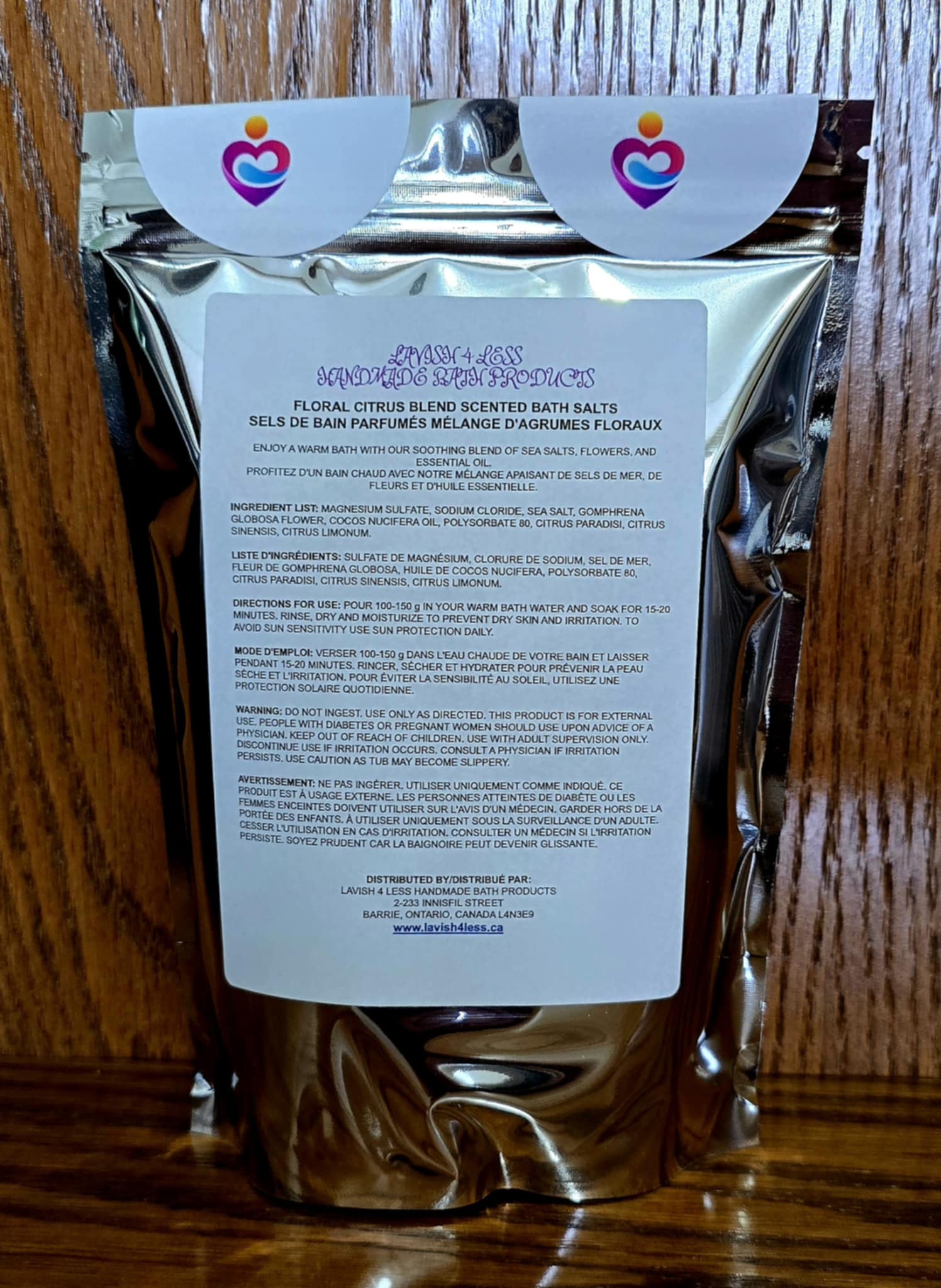 Perfect for a refreshing soak, imagine stepping into a bath that instantly lifts your spirits. Floral Citrus Blend Scented Bath Salts are made with high-quality, natural ingredients for a pure and gentle touch. The vibrant citrus scents create an uplifting aroma that invigorates the senses.