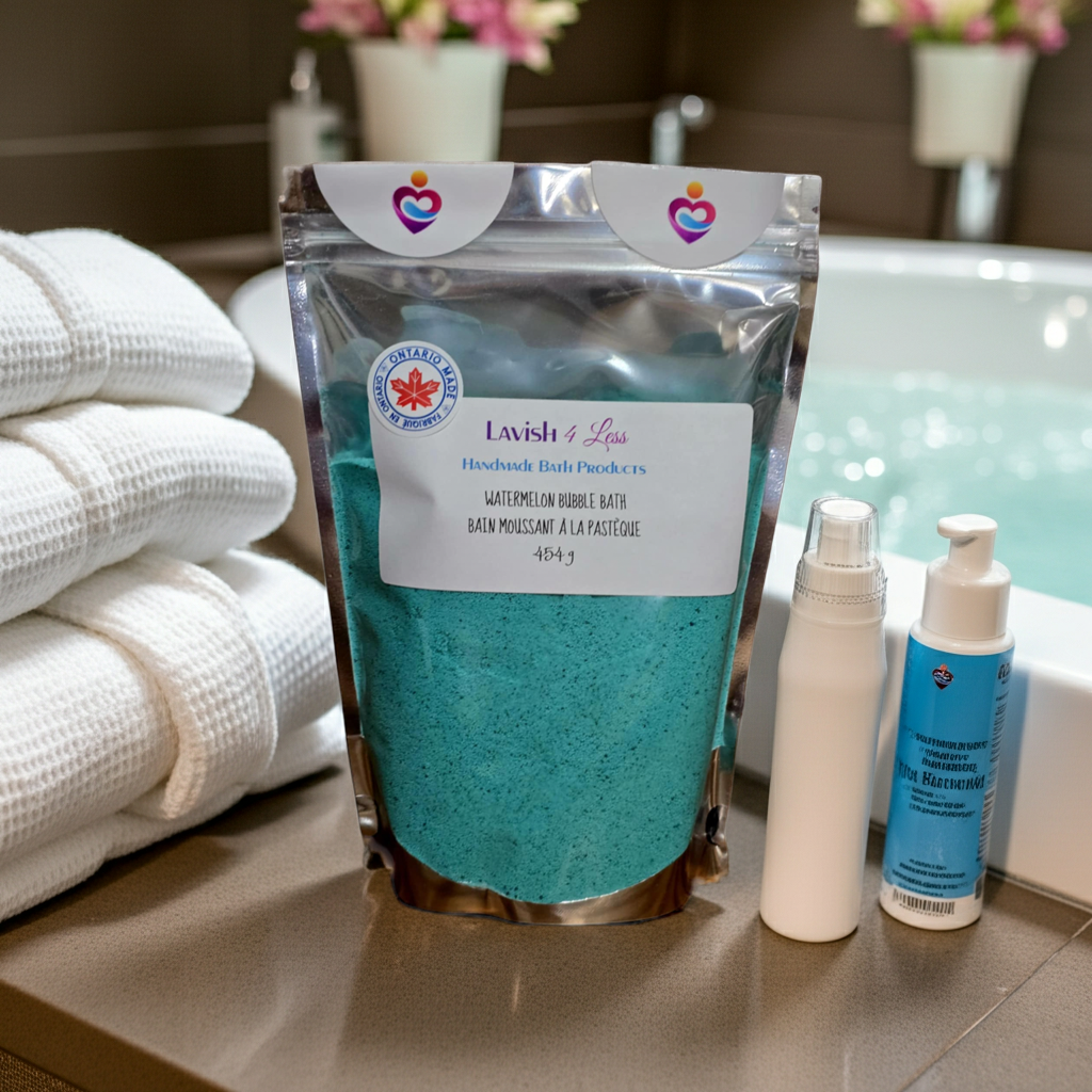 Whether you're unwinding after a long day or curating a spa-like experience at home, the luxurious bubbbles and juicy aroma create a moment of pure self-care. Immerse yourself in pure luxury with our Watermelon Bubble Bath, a lush green elixir that transforms your tub into a fragrant oasis of bubbly bliss. Whether you're indulging solo or gifting the experience, Watermelon Bubble Bath brings a juicy twist to relaxation.
