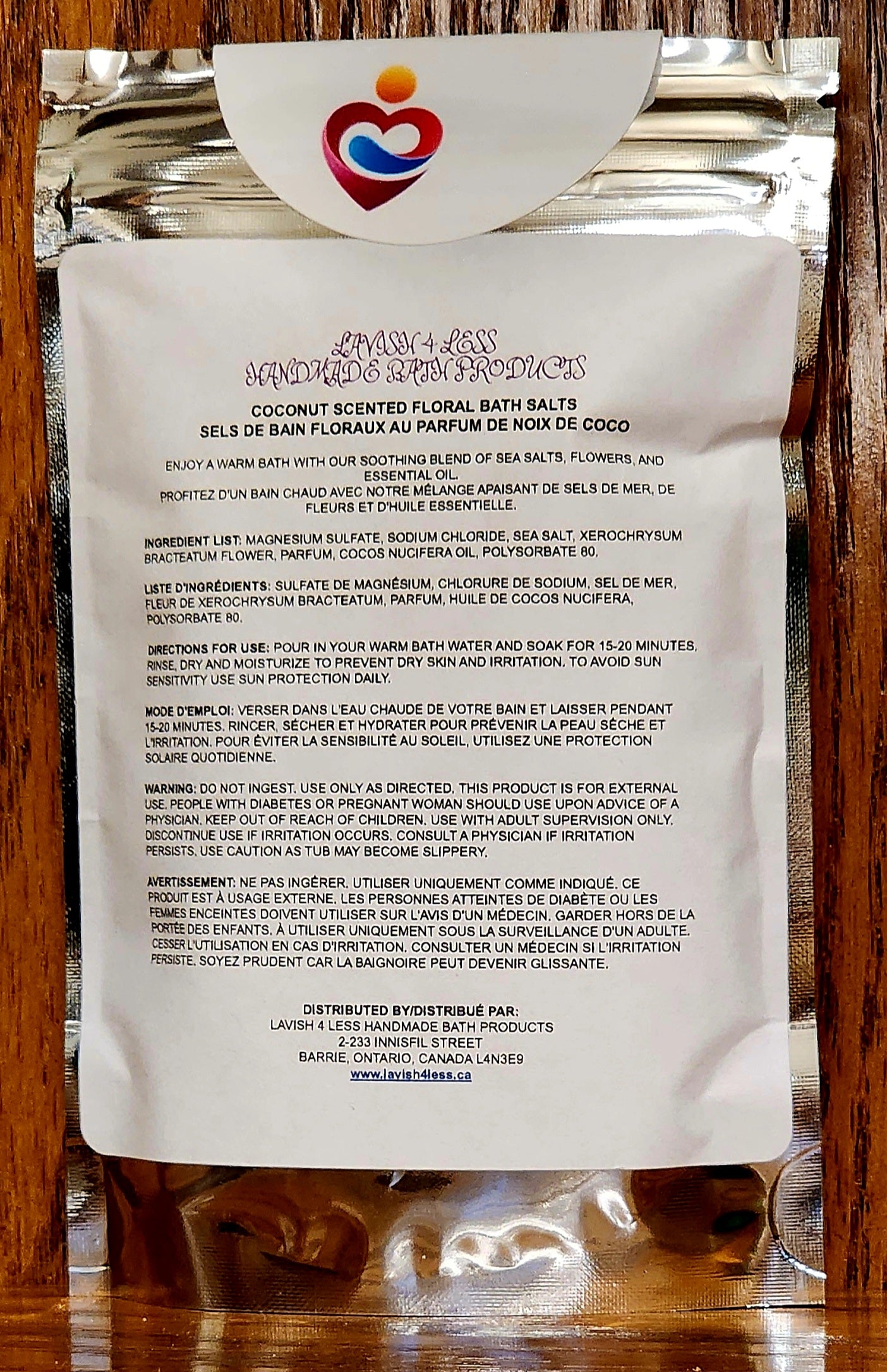 Perfect for a refreshing soak, imagine stepping into a bath that instantly lifts your spirits, melting away stress and tension. Our Coconut Scented Floral Bath Salts create a tropical paradise, enveloping you in a soothing, aromatic embrace. Enjoy a spa-quality experience in the comfort of your own home. You deserve it!