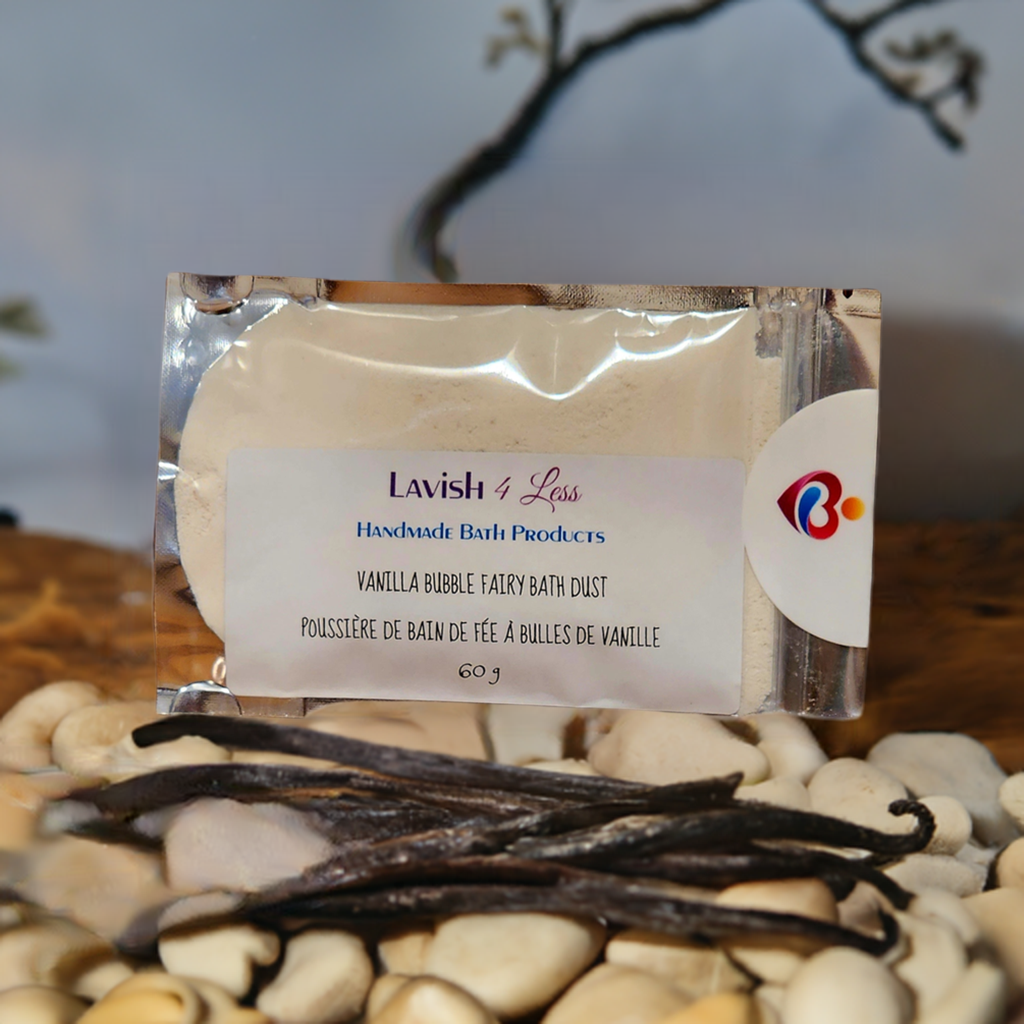 2 Vanilla Bubble Fairy Bath Dust: Enjoy a whimsical bath treat that turns your ordinary bath into a fairy tale experience. This luxurious bath dust is crafted to transform your bath into a magical haven of relaxation and indulgence.