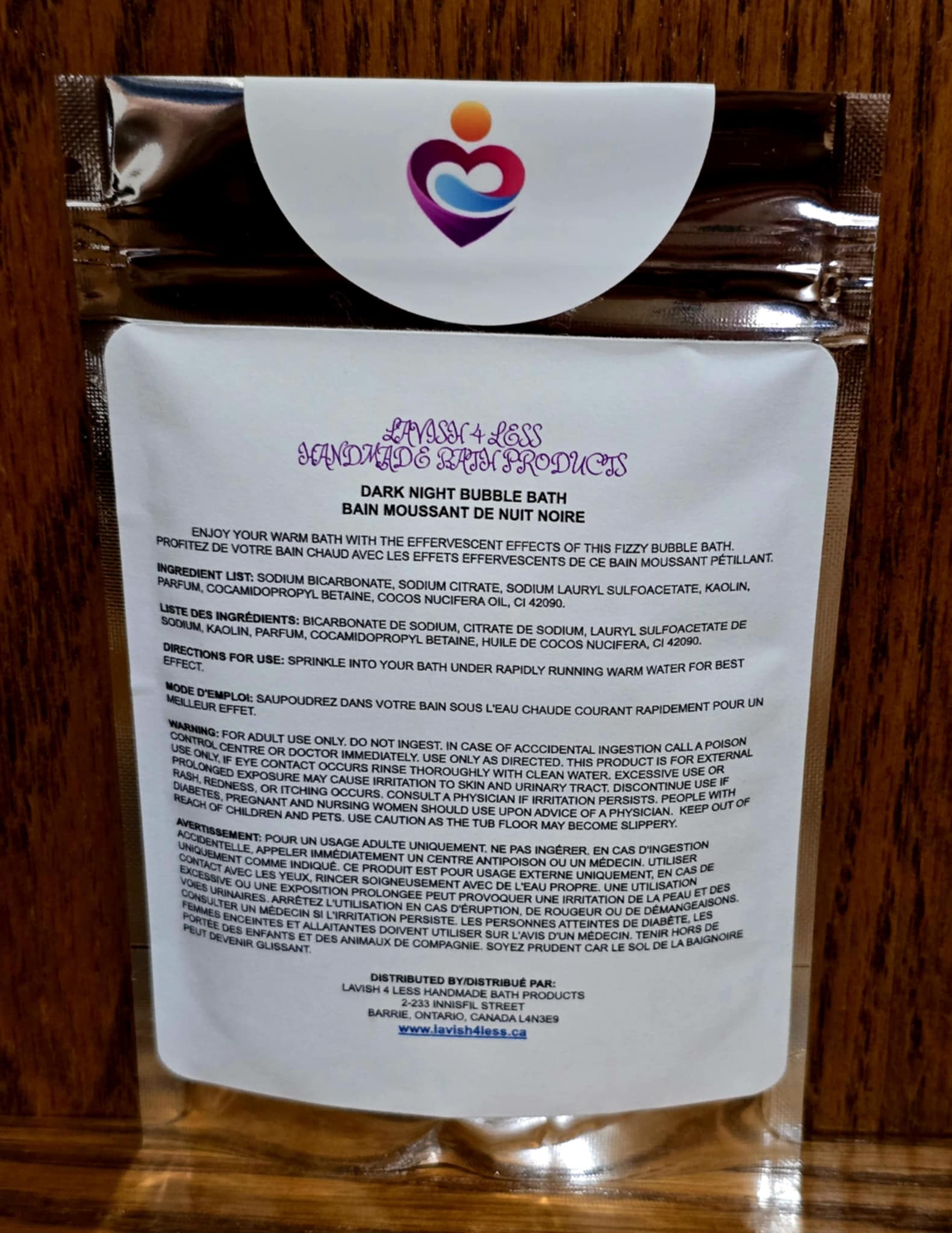 Elevate your bath experience with our Dark Night Bubble Bath! Infused with a bold, sophisticated scent, this bubble bath is designed to awaken your senses and leave you feeling refreshed and revitalized. Perfect for those who seek a powerful and energizing bath experience, this Dark Night Bubble Bath offers a unique blend of aromas that will transform your daily routine into a luxurious indulgence.